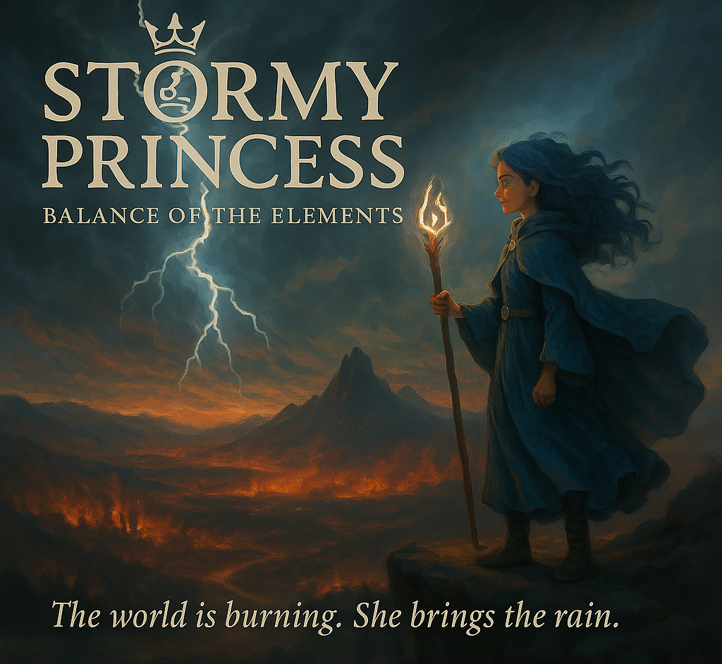 The Kingdom of Aeriwyn is collapsing under drought and pollution, ruled by the Ember King. Born from storm and sea, Stormy Princess rises not to conquer – but to restore. With wind, rain and wisdom, she battles elemental corruption, gathering allies and inspiring a new era of guardians.
